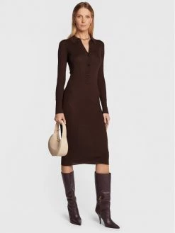 Patrizia Pepe Γυναίκες Πλεκτά Φορέματα Φόρεμα υφασμάτινο 2A2436/KM36-B748 Καφέ Slim Fit Καφέ